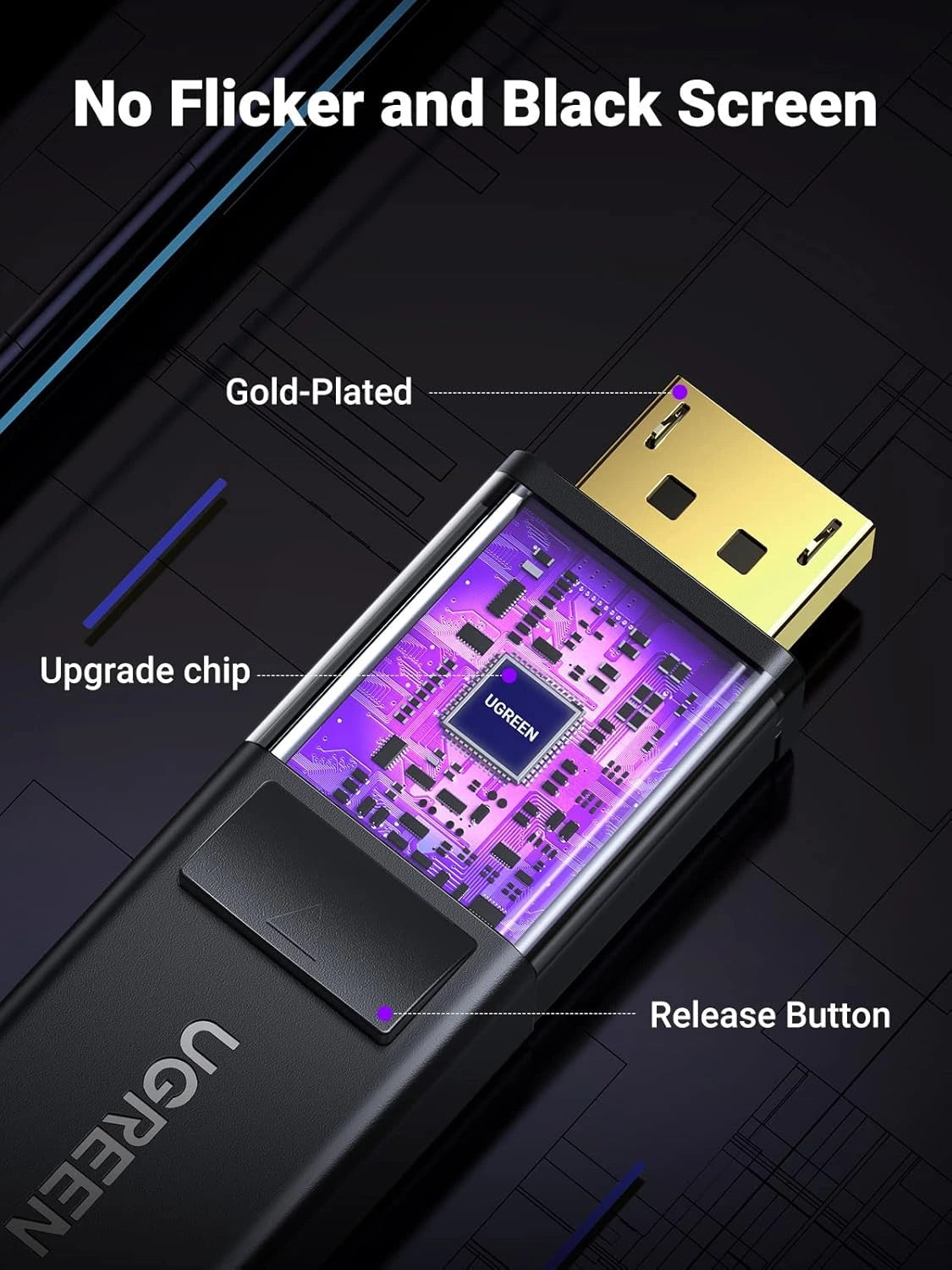 - Stable Transmission: UGREEN DisplayPort to HDMI Cable with Advanced Processor Chip, which can transmit high-definition video and audio from your computer to an HDTV for video streaming or gaming with stunning clarity and authentic audio. Designed for a remarkable user experience with no visual or audio glitches, artifacts, or audio/video synchronization problems. It is not bi-directional: not support HDMI to DP.